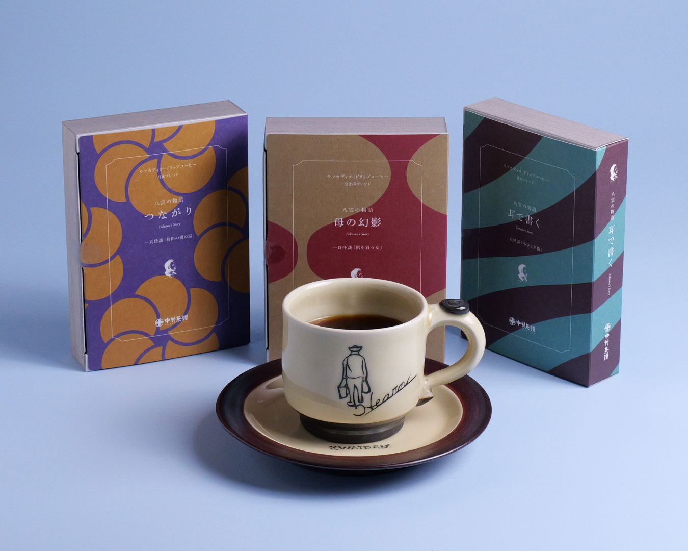 2025年9月より販売開始をした「文庫型ラフカディオ珈琲」。「八雲を身近に感じる珈琲」をテーマにブレンドしたオリジナル珈琲です。怪談で有名な⼋雲ですが彼の⼈柄や⼈⽣、思想はまだまだ広くは知られていません。箱を開くと松江が舞台の一頁怪談とそれにまつわる八雲のエピソードがお楽しみいただけます。誕生して37年の人気商品「ラフカディオ珈琲」と同じく、小泉八雲の曾孫・小泉凡氏ご協力のもと制作しました。