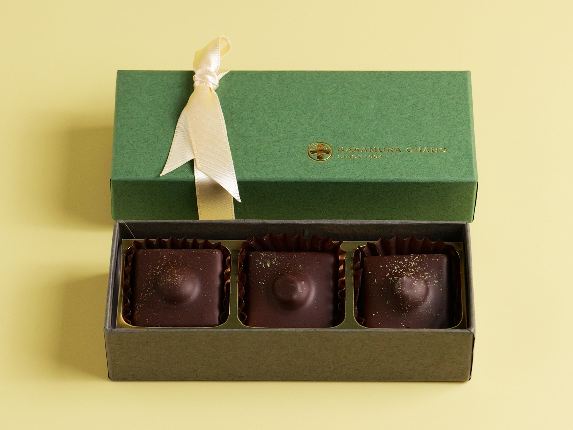 三種の日本茶が持つ香り、旨み、余韻。それぞれの個性を丁寧に見極め、果実の風味を閉じ込めたゼリーショコラと重ね合わせました。日本茶の奥行きに、果実の瑞々しさが寄り添い、ひと口ごとに表情を変える味わいをお楽しみください。